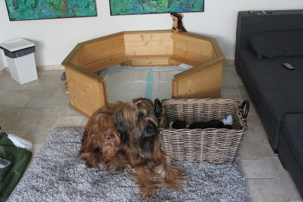 Die kleinen Prinzen und Prinzessinnen entwickeln sich super. Halbschwester Amiswine hat die Pflege mit übernommen und hilft Ihrer Mama wo sie nur kann. Es ist einfach wunderschön zu sehen das sich die Hunde so vertrauen.