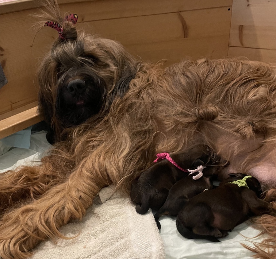 ❤️Wie schon bei Daisys vorangegangen Würfen, pünktlich am 63. Tag kamen die Babys. Daisy hatte schon einen Tag vorher Vorwehen, hat in der Nacht dann mit auf meinem Bett geschlafen und war den ganzen Tag etwas unruhiger.